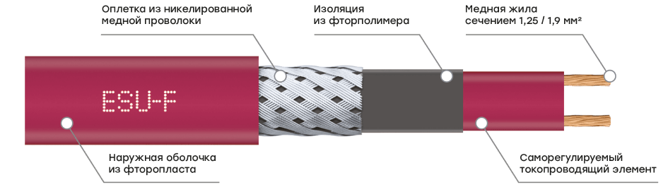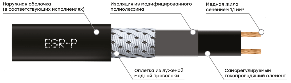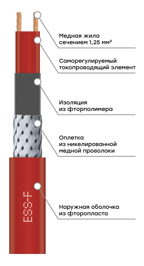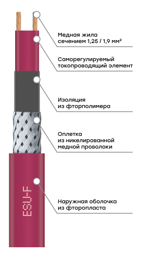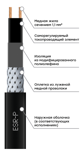 | Тип кабеля | Саморегулирующийся | Саморегулирующийся | Саморегулирующийся | Постоянной мощности | Постоянной мощности |